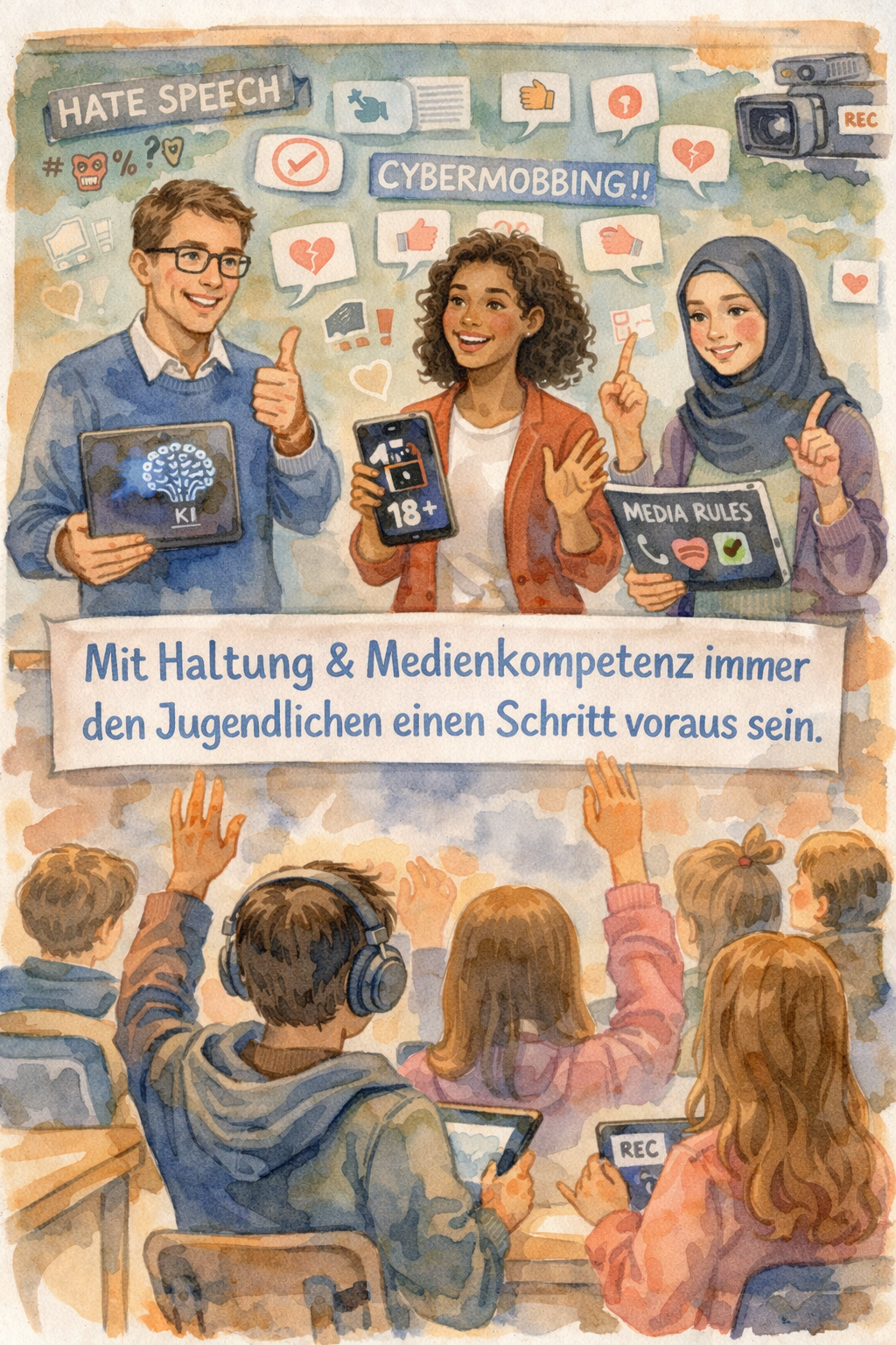 Mit Haltung und Medienkompetenz immer den Jugendlichen einen Schritt voraus sein – hierfür bieten wir umfangreiche Fortbildungen und Themennachmittage an.